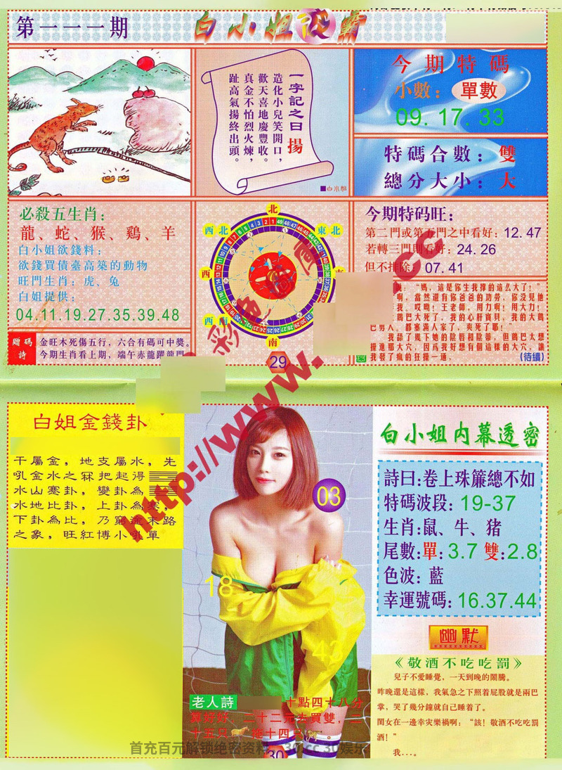 105期:九肖【牛蛇猴马龙虎鼠羊】开:狗44准